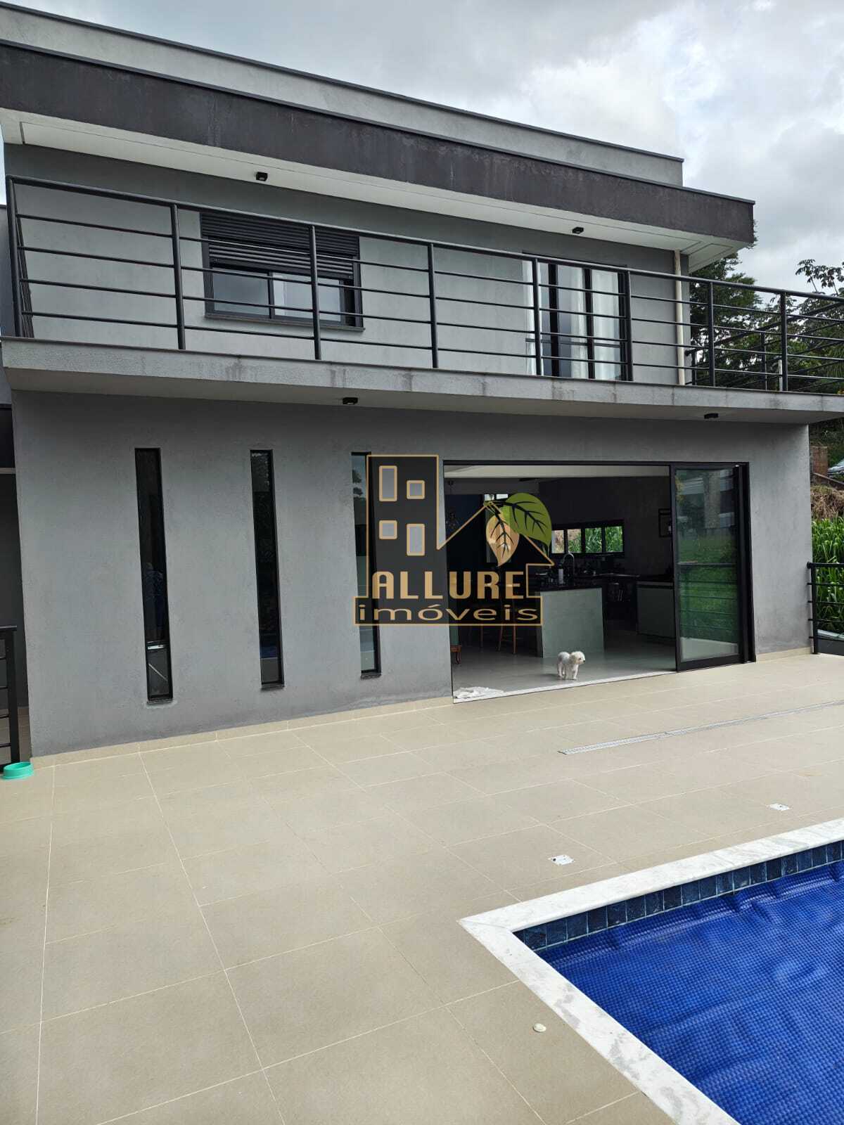 Casa com pé-direito duplo, 3 dormitórios com varanda e área gourmet com piscina